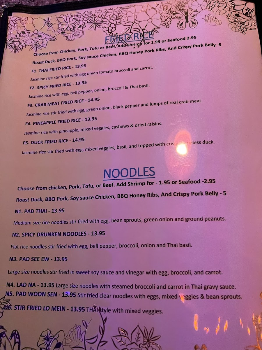 Choose Duck or Seafood, Egg noodles, veggies, and bean sprouts.