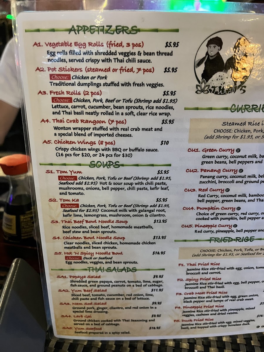 Choose Chicken, Pork, Beef, or Tofu (Shrimp or Seafood for an additional charge), Thai style with mixed vegetables.